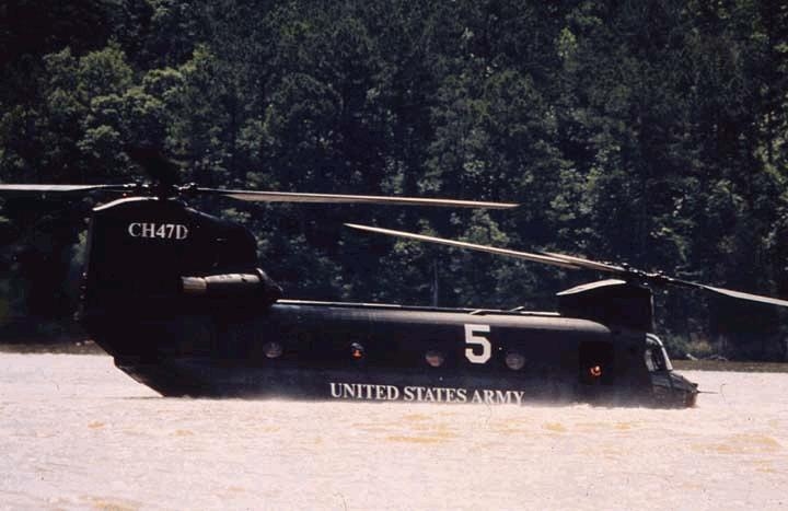 Apesar de não ser um modelo anfíbio, o CH47 possui boa capacidade de flutuação, exibido aqui.